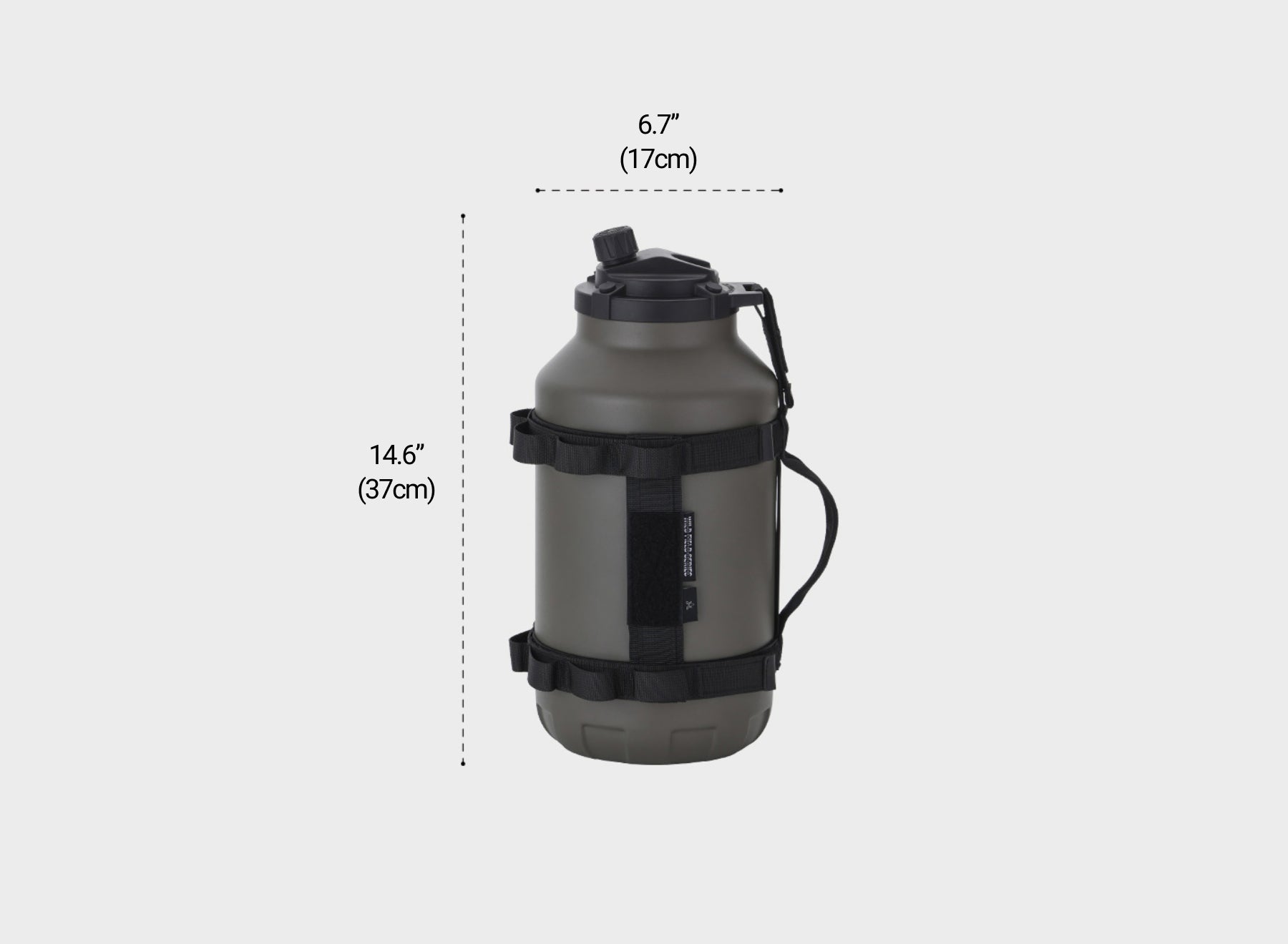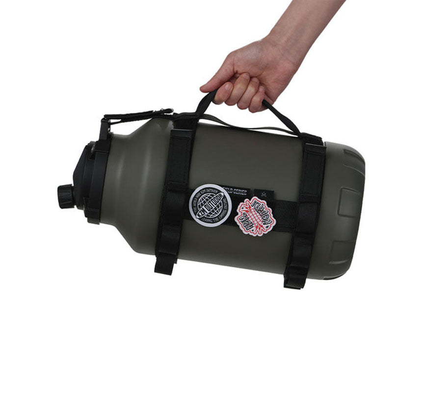 A 4.5-liter insulated water jug built for camping and outdoor use. Crafted with durable materials and a sealed lid design to support hygienic storage, temperature retention, and easy carry with a webbing strap.