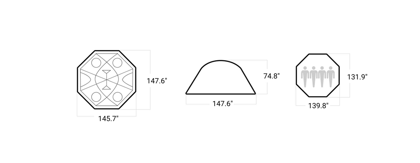 The Ghost Shelter is a durable, expansive structure with an easy 3-pole hub system for quick setup, built with premium Nylon Ripstop fabric for superior strength and featuring panoramic mesh windows with integrated water drainage.