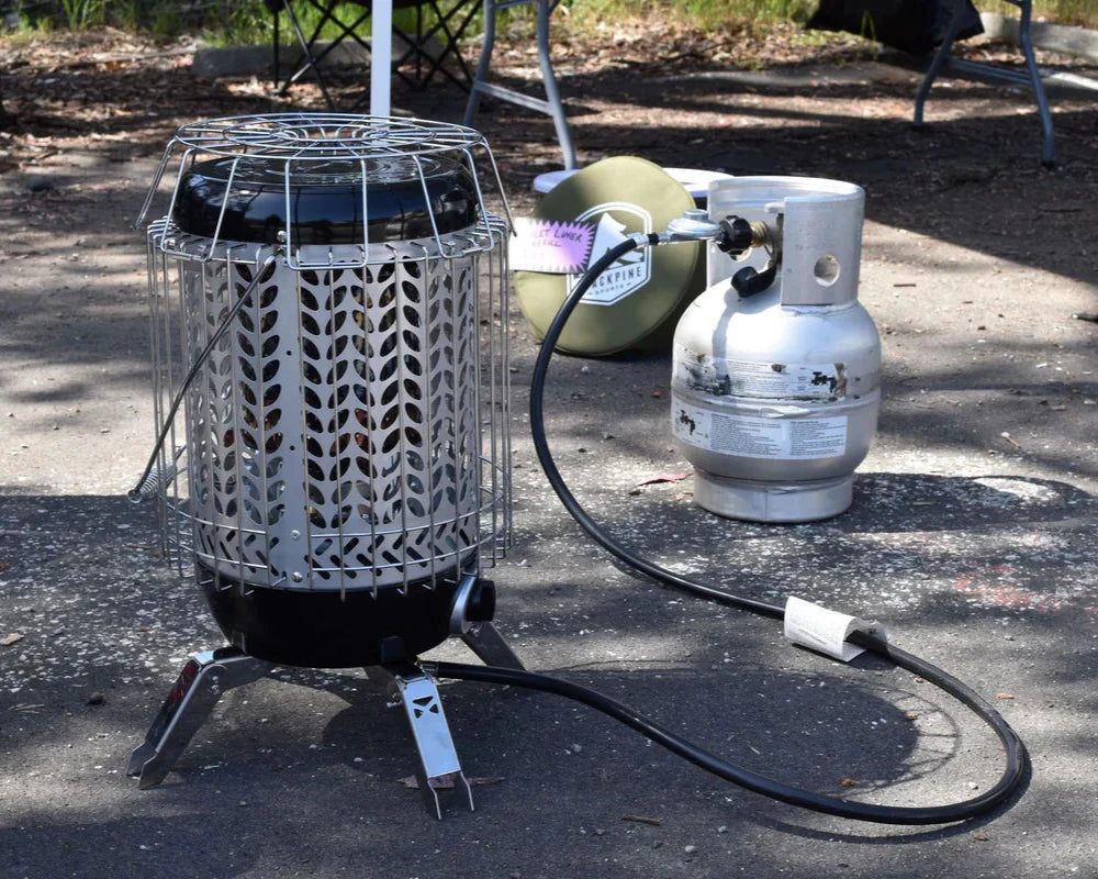 With triple automatic safety shut-offs (flame-out, ODS, tip-over), 360° heat up to ~15,000 BTU, and simple one-touch ignition, it delivers serious warmth with zero fuss. It runs efficiently on common 5–20 lb propane tanks, weighs only 13 lb, and is rugged enough for a rainy or cold winters camping. Use it outside the tent, in a vestibule, or in a large, well-ventilated canvas shelter with a CO Monoxide Detector, and enjoy real heat, minus the anxiety.