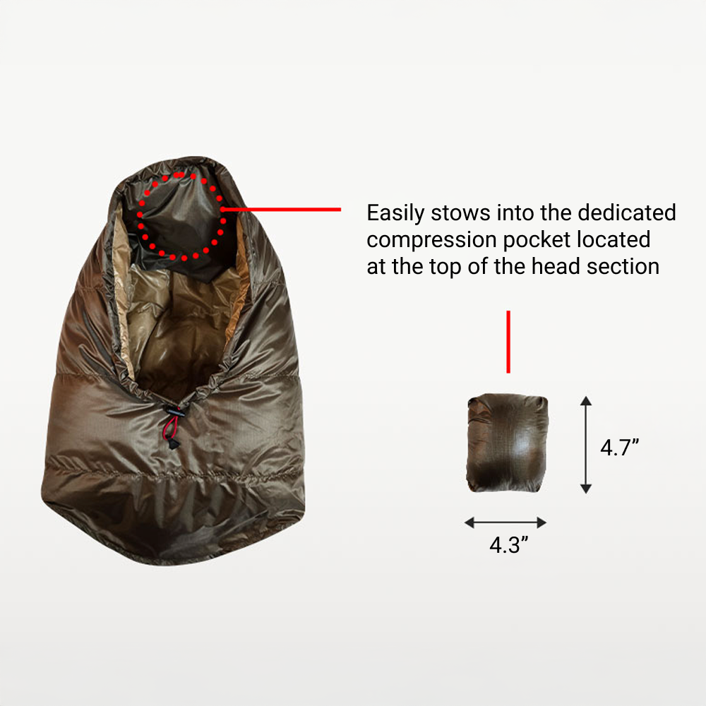 A dedicated compression pouch is integrated into the top of the balaclava, allowing you to pack it down into a small, travel-friendly size.