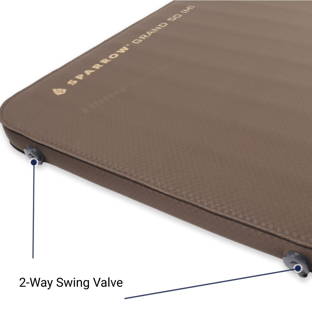 Sleep comfortably anywhere with the Grand 50 - Medium. Its medium-size design offers ideal space for one person, 50D stretch fabric evenly supports your body, 2.9"(7.5cm) high-density PU foam provides excellent resilience, and 3D sidewalls ensure edge comfort. Durable TPU coating, non-slip base, quick swing valve inflation, and easy roll-up storage make it perfect for both camping and indoor use.