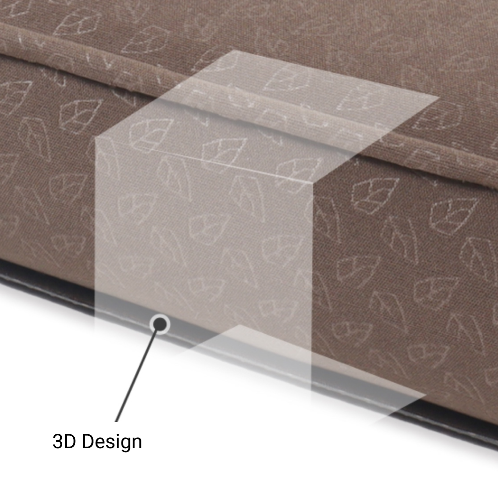 Upgraded from the conventional 2D design, consisting of only the top and bottom surfaces, to a 3D design that includes the sides. This ensures comfortable posture and restful sleep even at the edges of the mat.