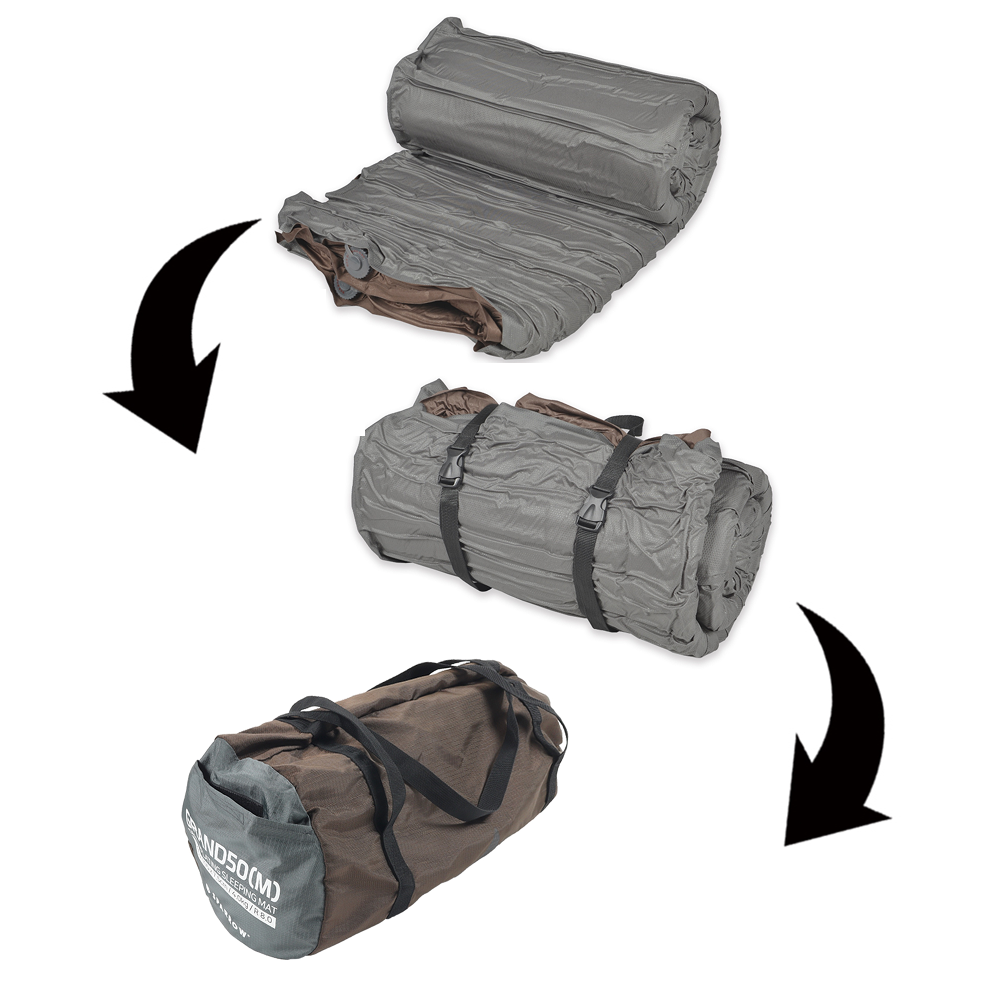 The Grand 50 - Medium is a premium medium-size outdoor mat with 50D stretch fabric, 2.9"(7.5cm) high-density PU foam, 3D sidewalls, TPU coating, non-slip base, and roll-up storage for ultimate comfort and convenience.