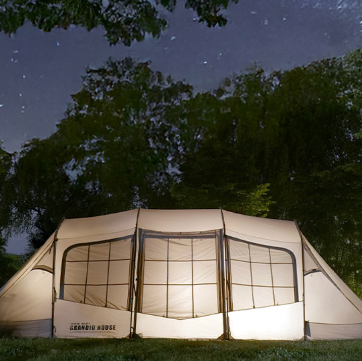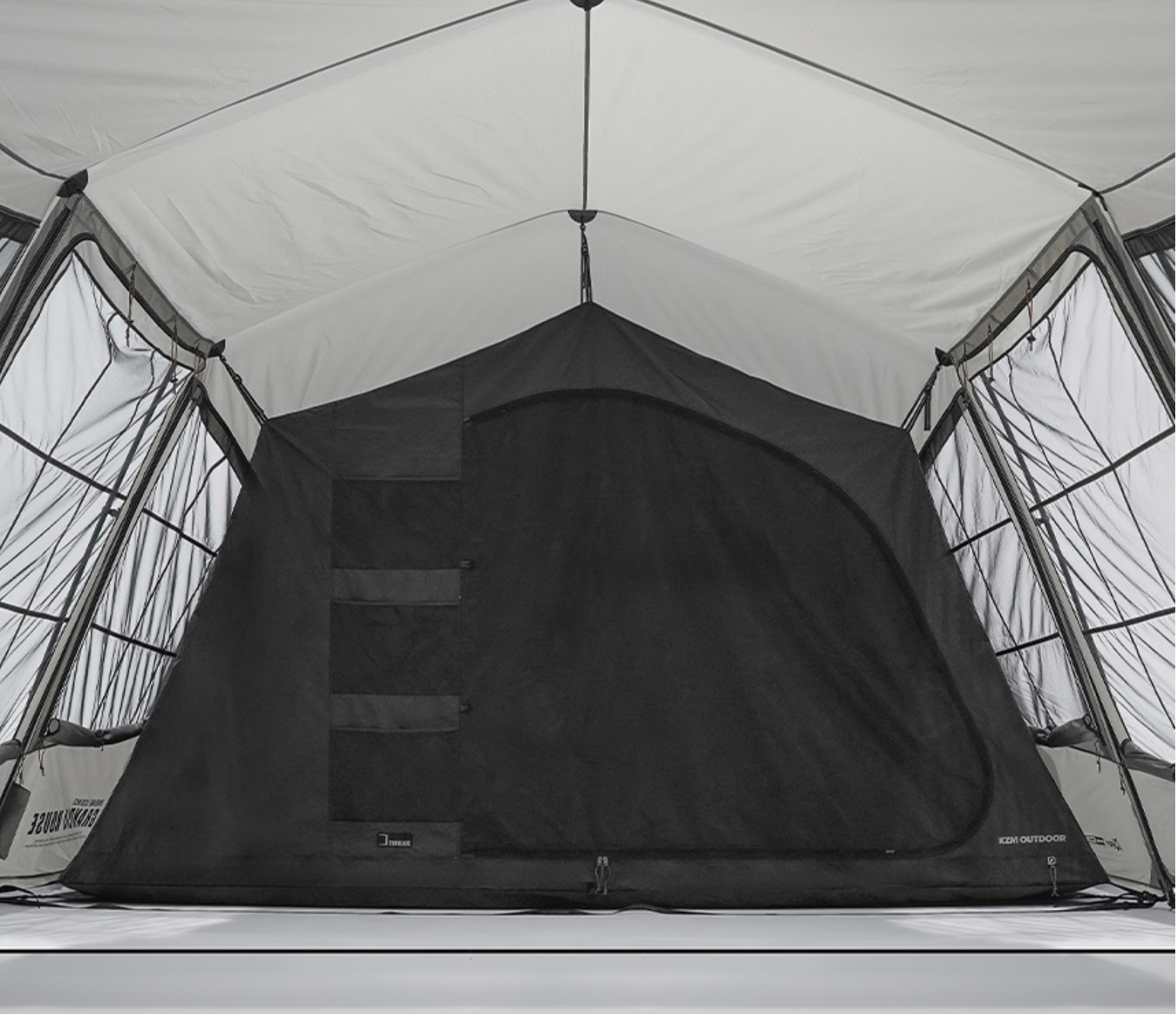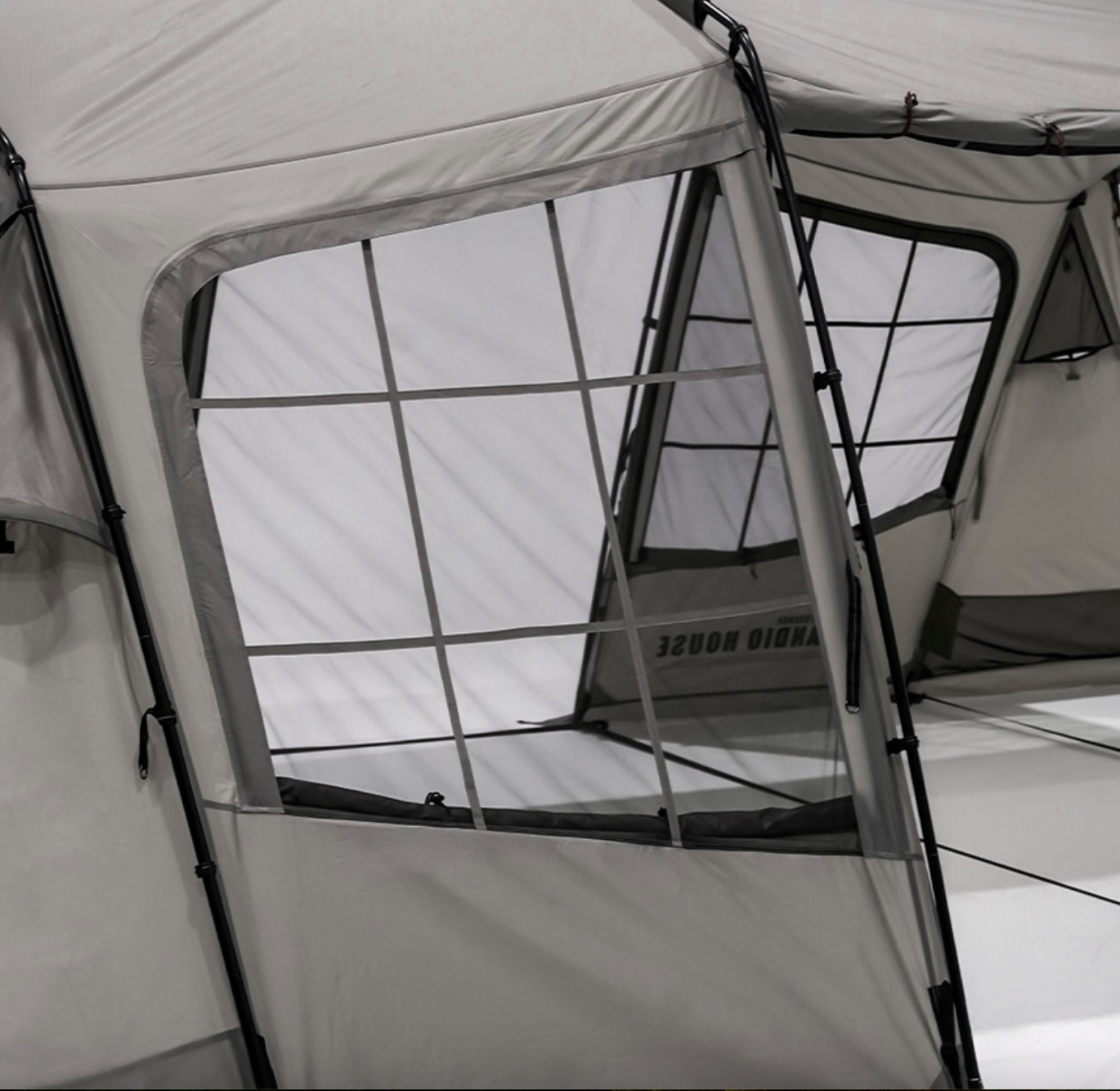 Stuffed, stuffy tents force you to choose between fresh air and privacy. The Grandio House Tent solves this with large mesh windows that keep air flowing while blocking insects. A subtle window grid design adds structure and visual privacy without closing off the space. You stay cool, comfortable, and protected—day or night, rain or shine.