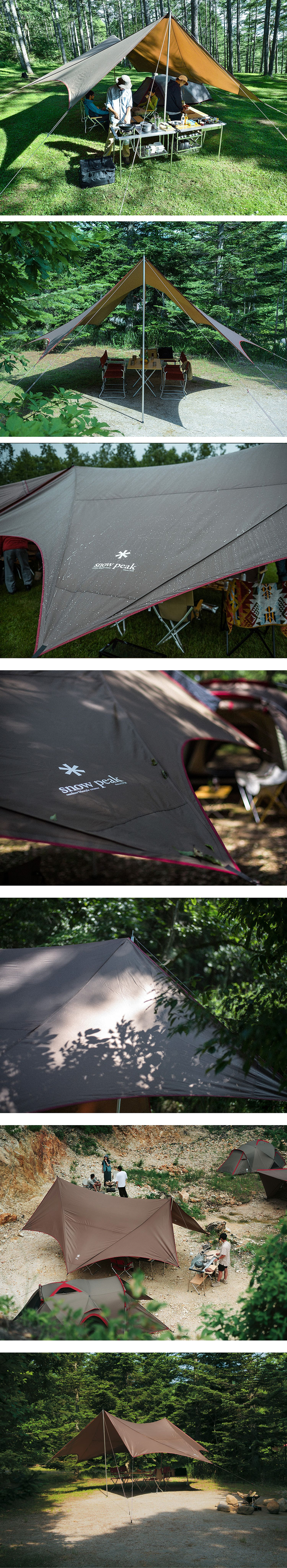 The HD Tarp Shield Hexa Evo Pro is a high-durability, hexagonal shelter designed by Snow Peak using a Shield-process 210D polyester fabric. It features a straightforward two-pole, six-stake setup that creates a spacious communal area suitable for multiple tents or gathering zones.
