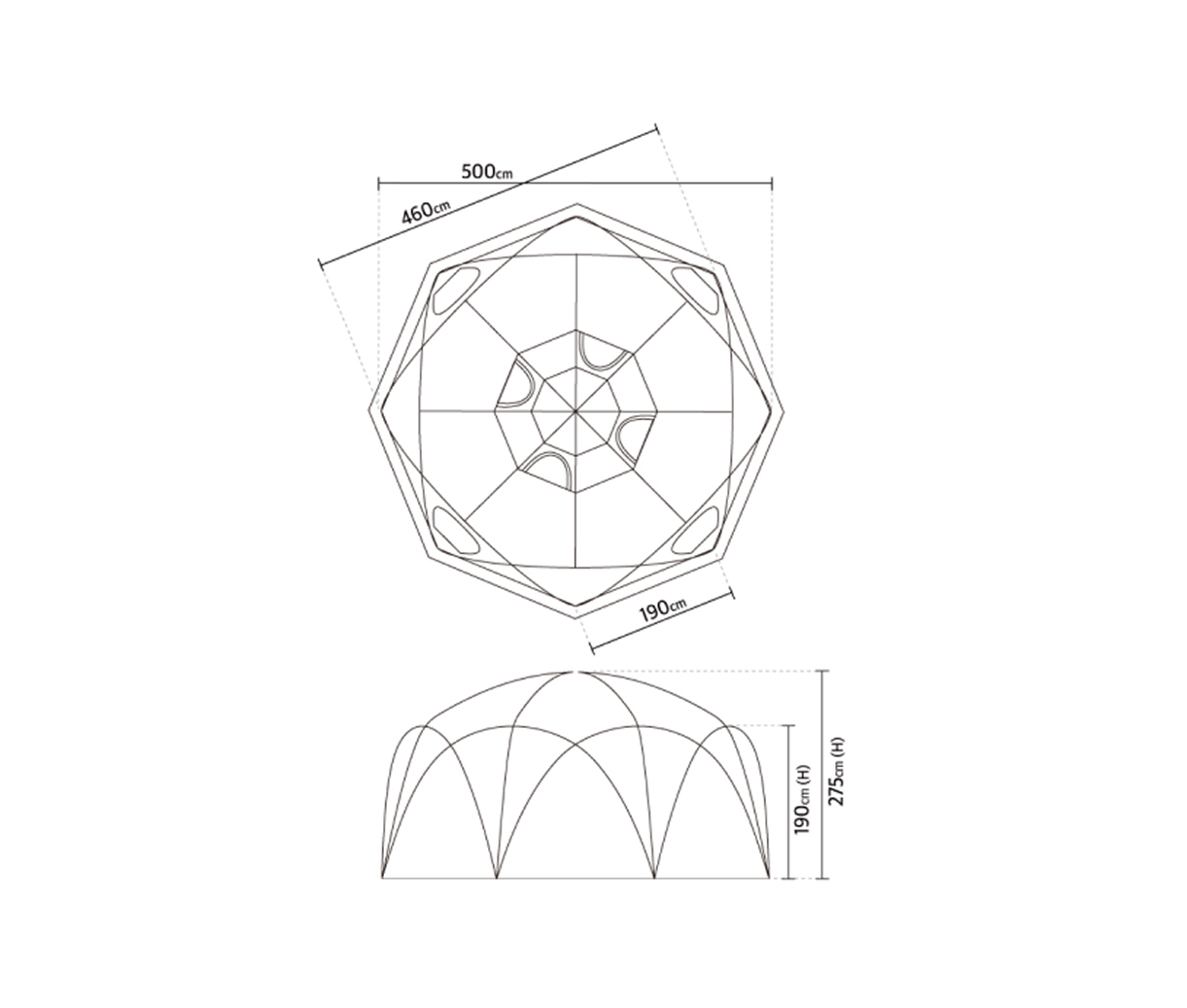 The J.crown 5.0 a spacious 5M(16.4ft) dome shelter designed for both personal camping and small to medium gatherings. Its vertical walls and optimized pole structure maximize interior space, allowing comfortable movement and seating even near the edges. Crafted with durable, weather-resistant materials, it ensures easy setup and reliable protection in various outdoor conditions.
