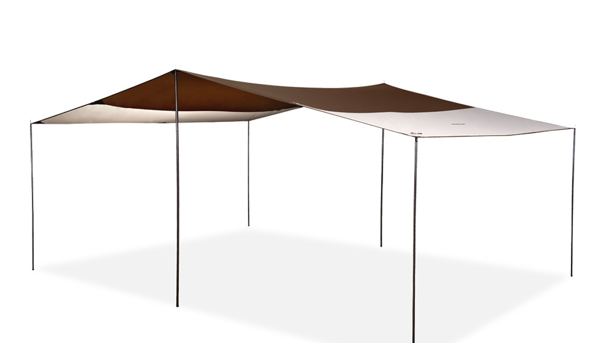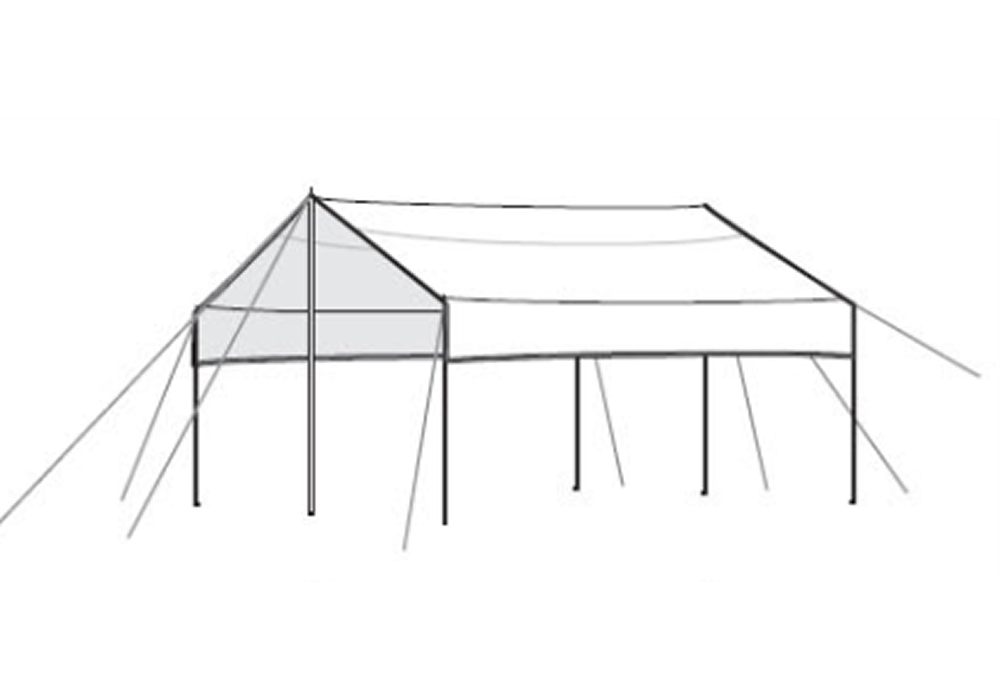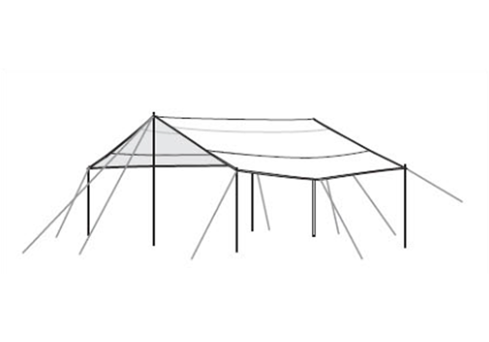 A classic open setup that maximizes shade and usable space. Ideal for creating a wide, comfortable shelter for group seating, cooking, or relaxing.