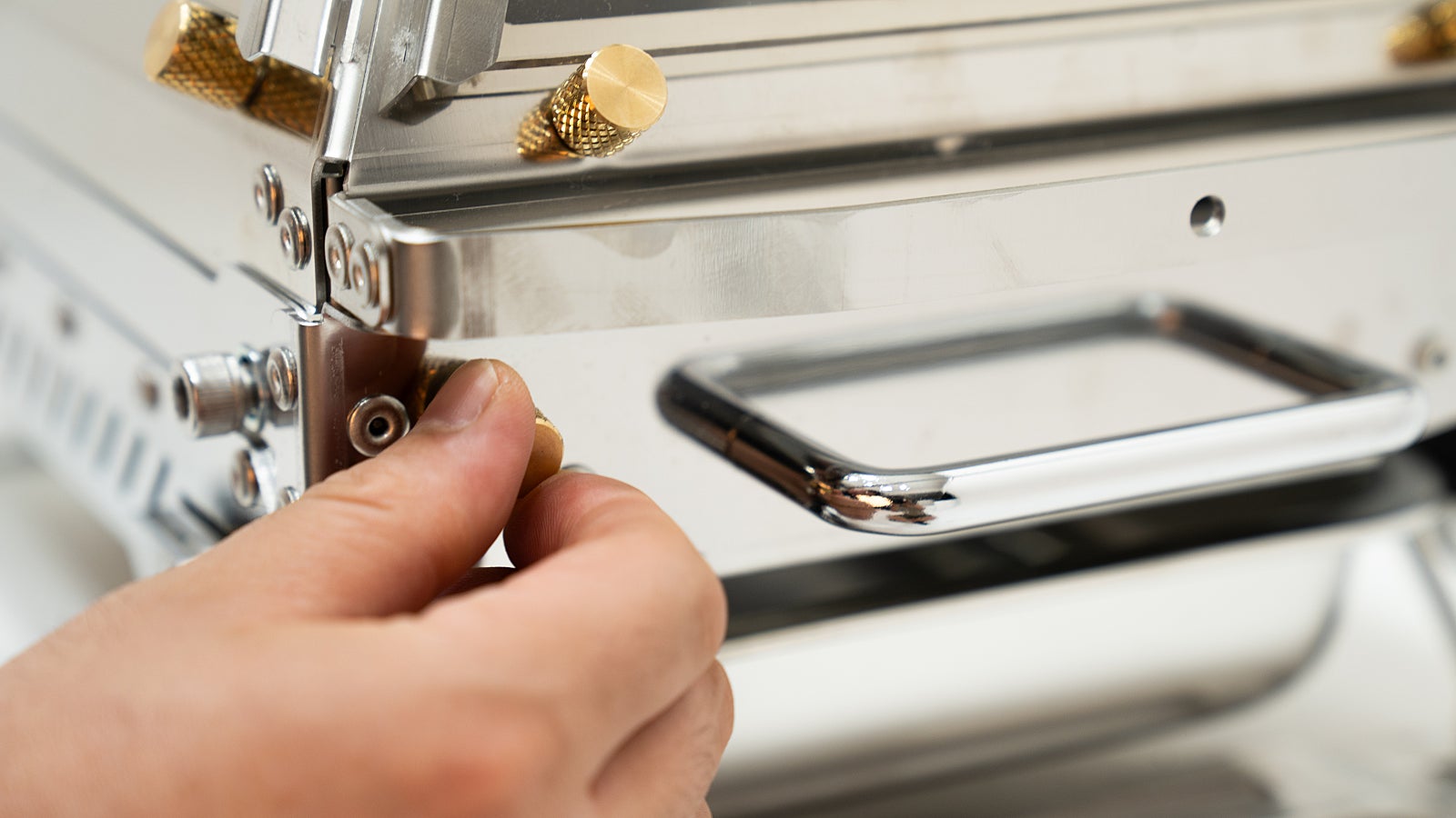 To remove the side flaps of the Unicorn M main body, begin by loosening the bolts. Grip the bolt securely and turn it counterclockwise until it is fully unscrewed. Repeat this process for all four sides to detach the side flaps.