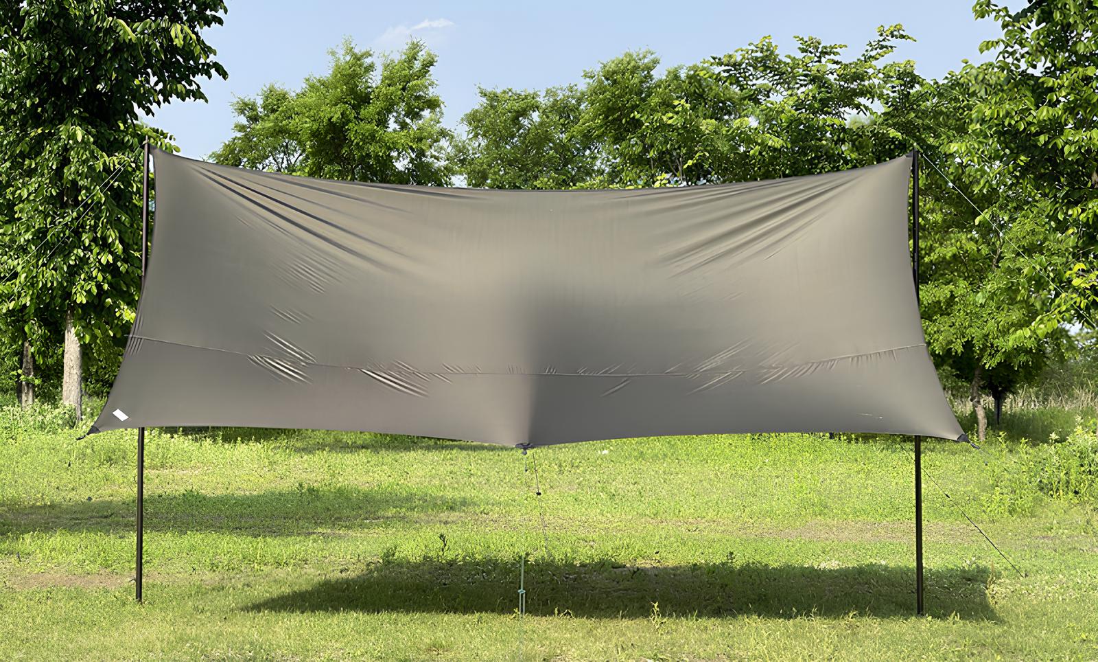 Crafted from durable nylon ripstop fabric with a silicone coating and black pigment finish, the tarp offers enhanced UV protection and superior shading performance, ensuring a cool and comfortable environment even in the peak of summer.