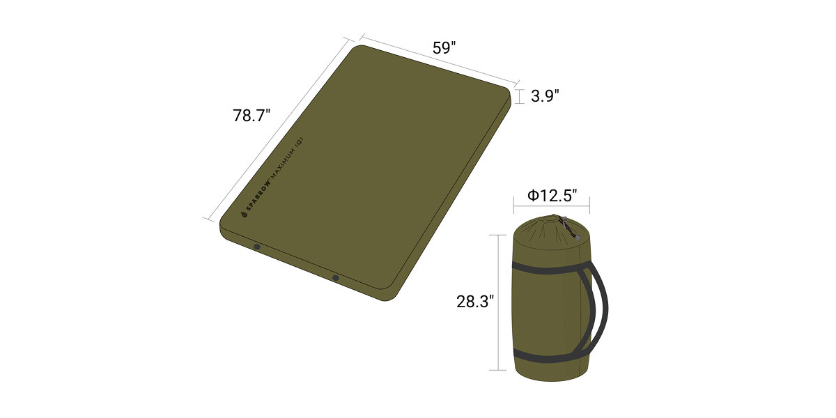 The Maximum - Queen is a 3.9"(10āÆcm) high, extra-wide outdoor mat with 50D stretch fabric, 3D sidewalls, TPU coating, non-slip base, and roll-up storage, providing comfortable and safe sleep for 2ā3 people.