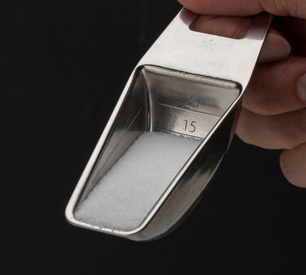 Manufactured in Japan, the Measuring Spoon is made of sturdy stainless steel. Use it for precise indoor or outdoor cooking, whether measuring coffee, liquid or oats. The Measuring Spoon features measuring lines and a handle for hanging, and with a two-tablespoon capacity, it’s an essential kitchen tool.