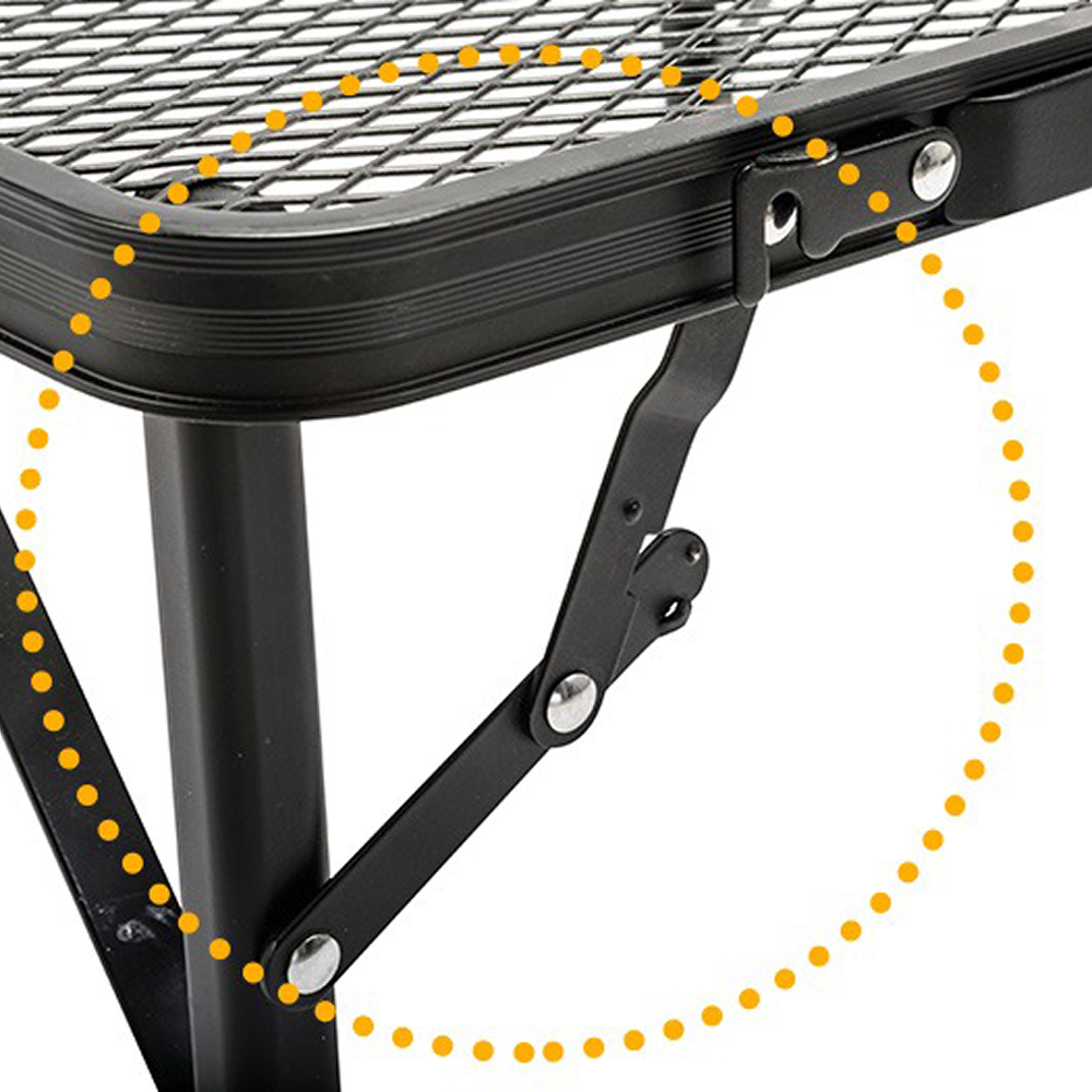 The Mesh Fire Camp Table is equipped with a frame locking mechanism that keeps the structure firmly in place. This prevents accidental folding during use, ensuring safe and stable performance at the campsite.