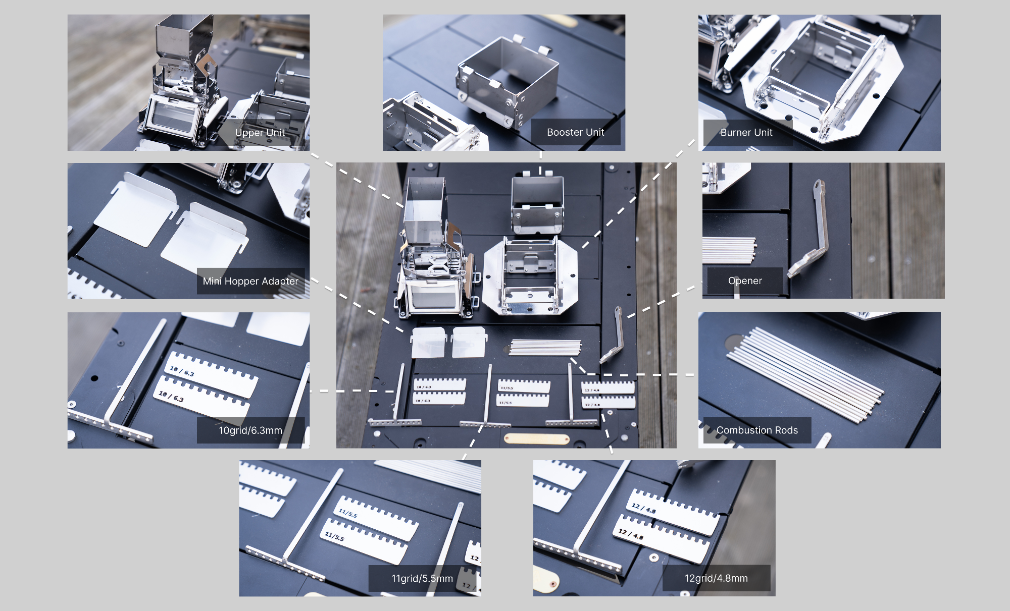 - Three different grid kit sizes are included, allowing you to customize the burner to match your pellet size.
