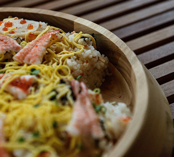 The Party Plate is a Japanese-designed laminated wood serving plate with removable inner stainless steel plates for versatile use. All components stack neatly for compact storage, making it suitable for parties or small gatherings.