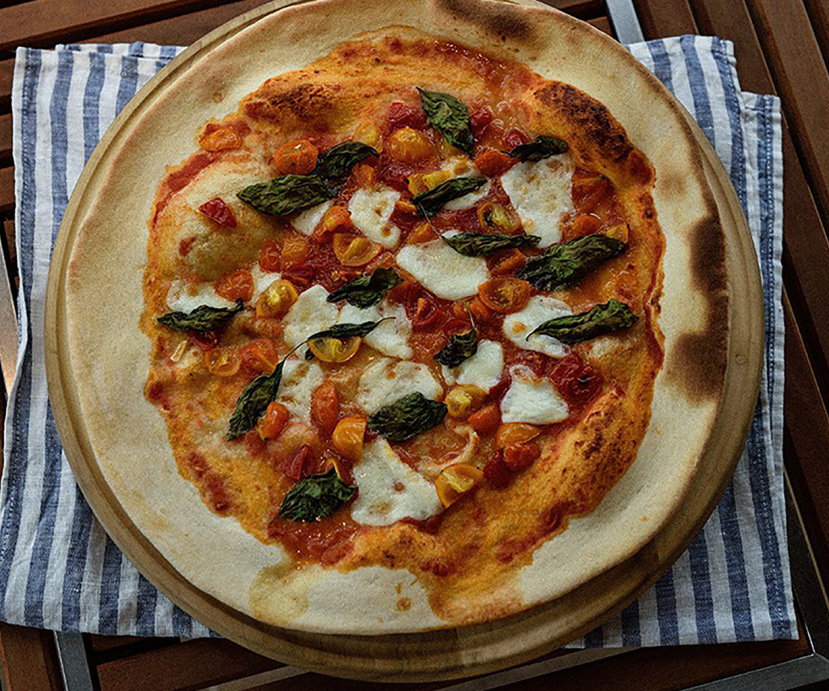 The deep wooden plate serves as a versatile dish for serving snacks, with its bottom surface designed to accommodate pizzas. Its design allows for easy handling and presentation of various foods.