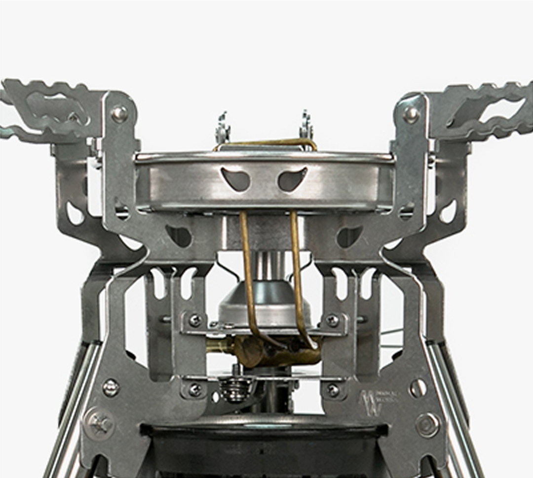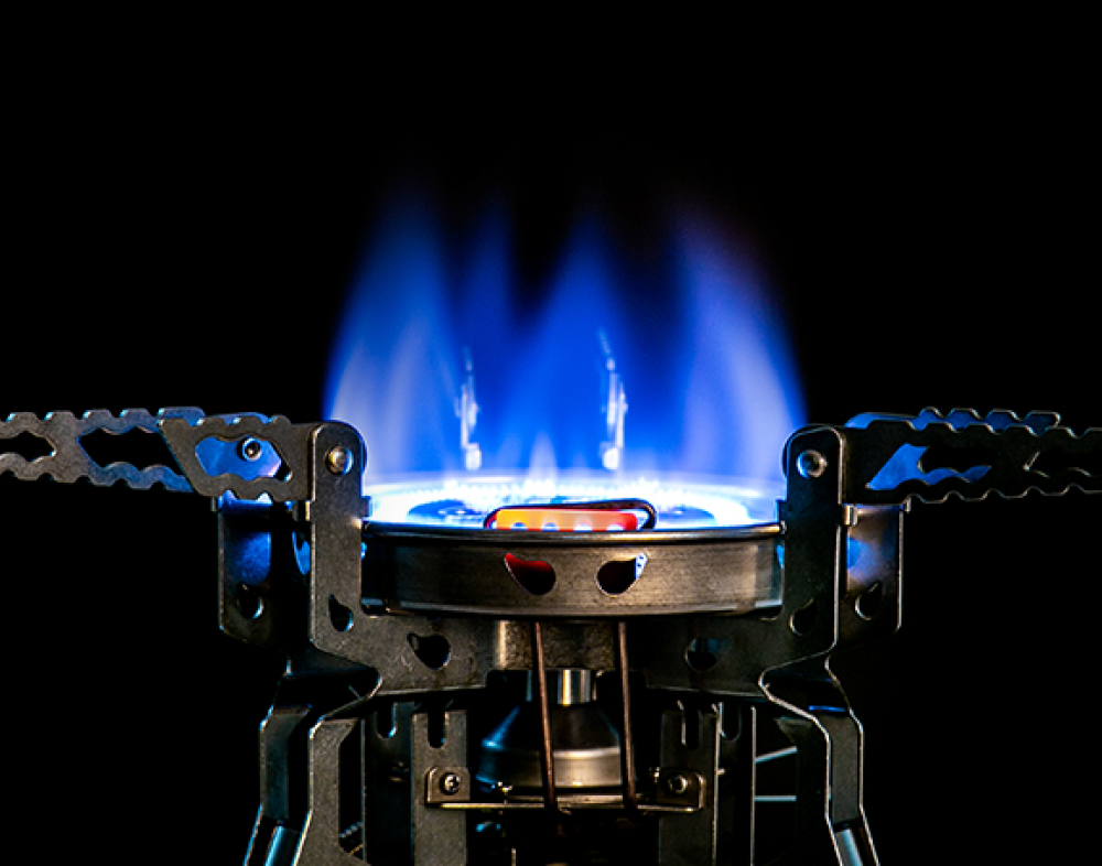 The Power Stove W delivers exceptional high heat output with a wide and stable burner design. Featuring four adjustable height levels and non-slip rubber feet, it ensures reliable cooking performance in various outdoor environments.