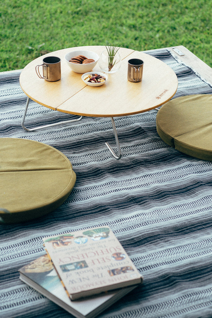 Designed in Japan, the Renewed Single Action Table Low Medium features a laminated bamboo top in an updated finish and stable aluminum legs.