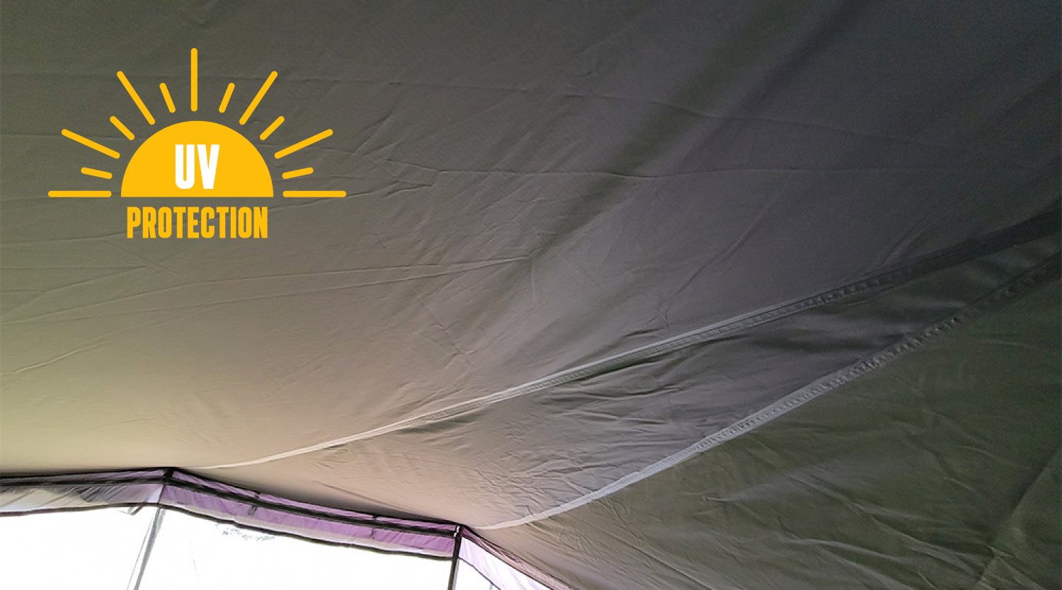 The ceiling fabric offers effective UV protection with a black-coated 150 ripstop material! By reducing light penetration, it can help keep the interior of a space cooler in bright conditions, contributing to a more controlled and comfortable environment.