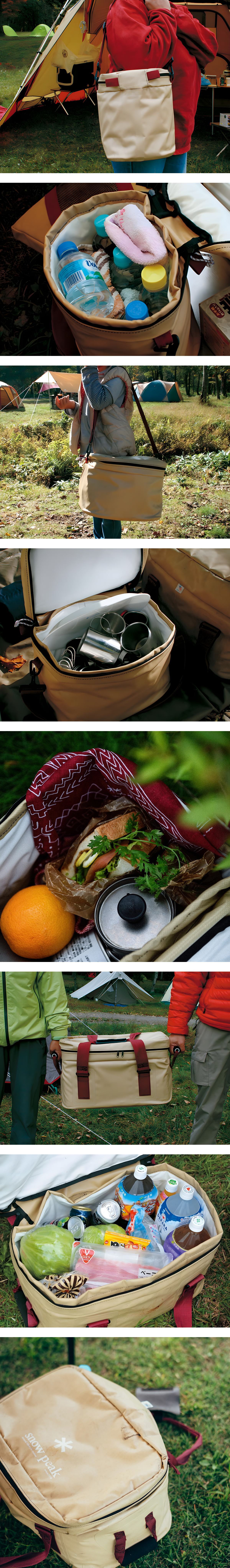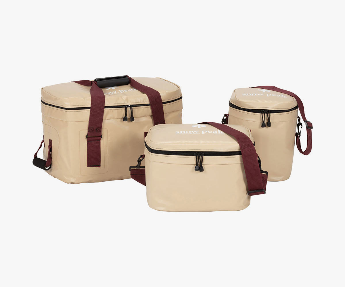 The Snow Peak Soft Cooler series includes three sizes: 11L, 18L, and 38L, designed to keep your food and drinks cold during outdoor activities. Each cooler features insulated walls with an inner aluminum coating, a zipper closure, and a carry strap for easy transport.