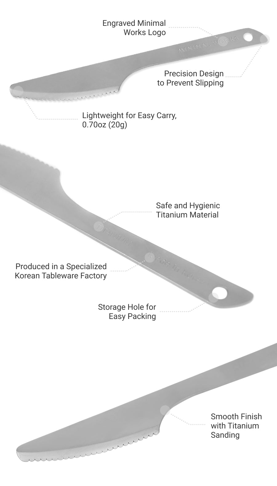 Package Includes : Titanium Spoon * 1, Titanium Fork * 1, Titanium Knife * 1