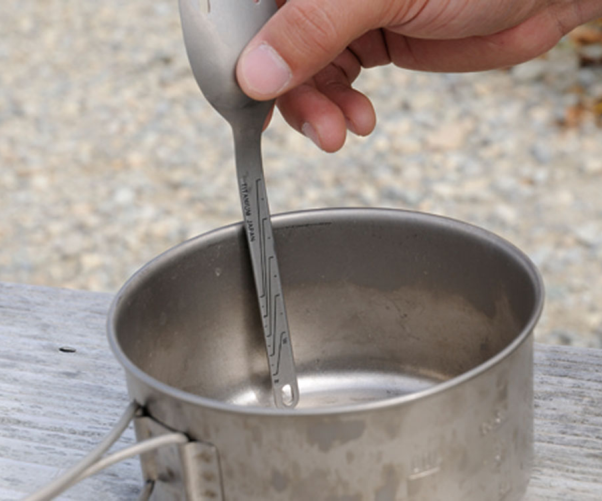 The Titanium Foon is crafted from lightweight and durable titanium for reliable use both outdoors and at home. Its hybrid design combines the function of a spoon and fork, making it versatile for solid or liquid meals.