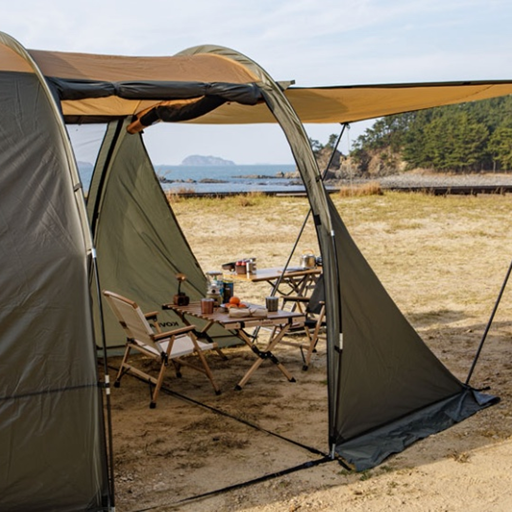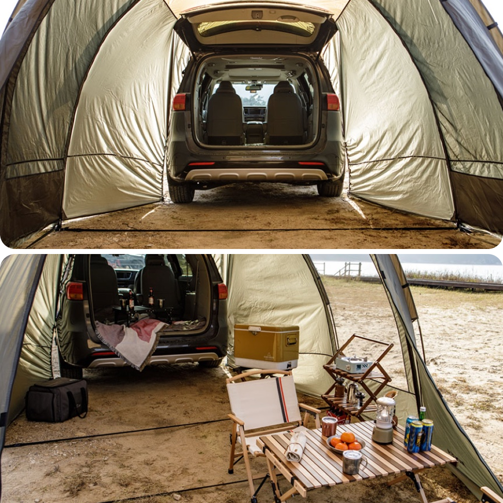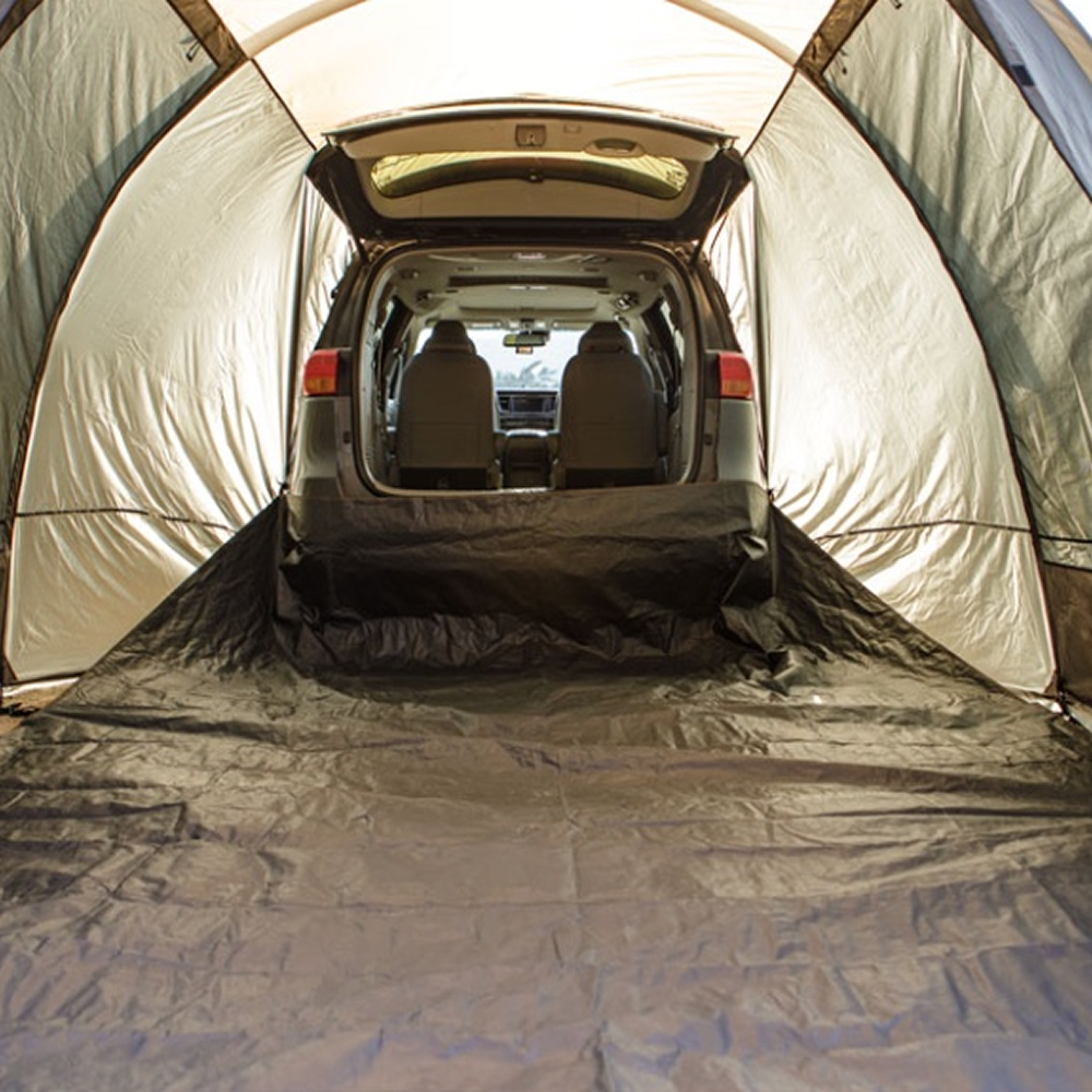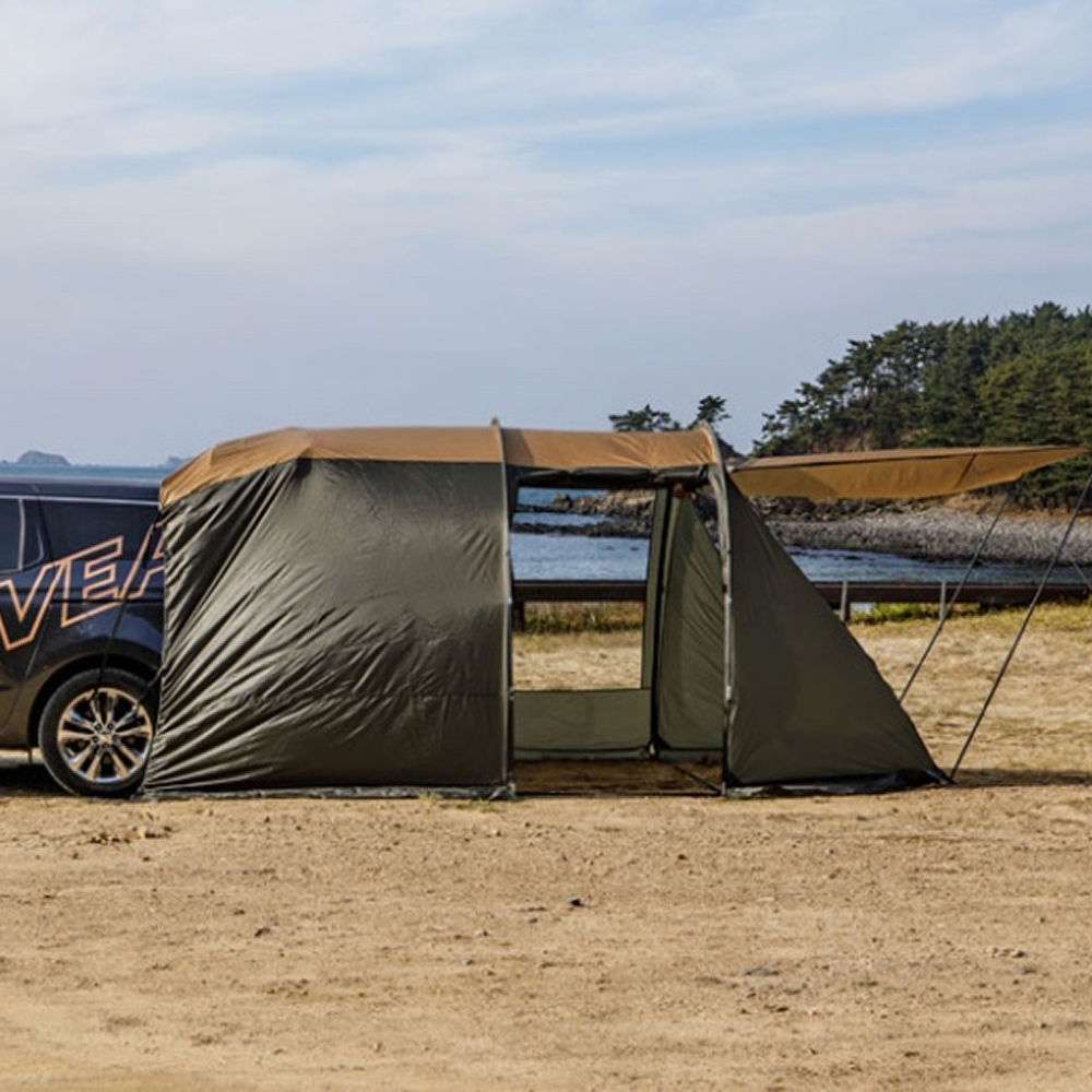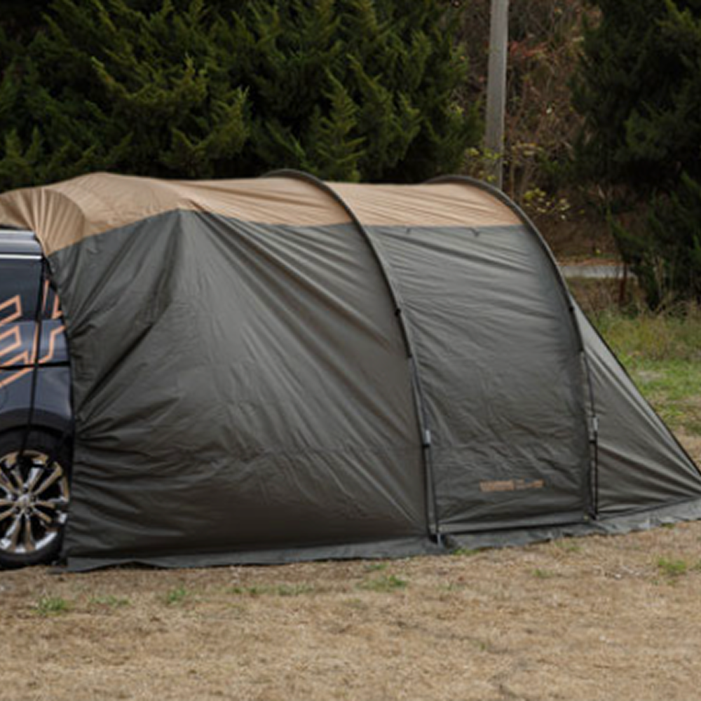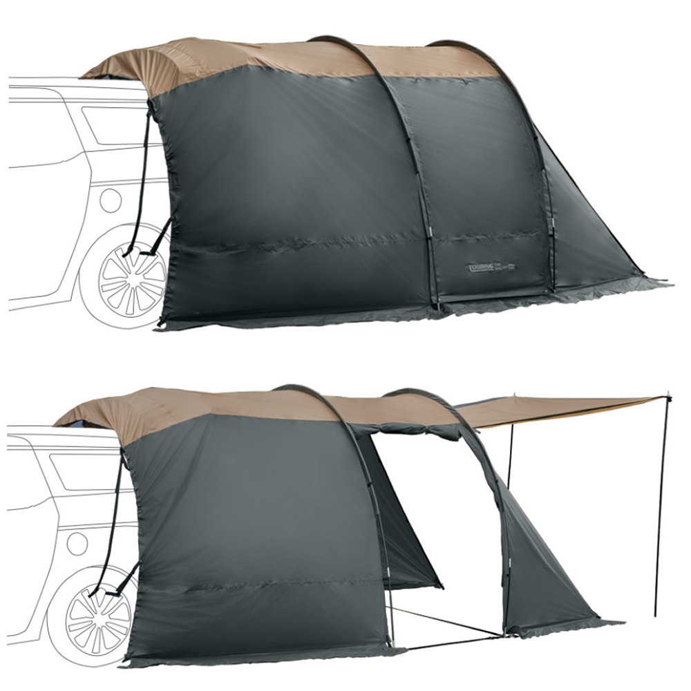 The Touring Car Shelter M2 is a spacious, two-pole tunnel tent that offers a highly adjustable, seamless connection to various vehicles, featuring stand-up height and a unique groundsheet that seals the bumper area against drafts and bugs.
