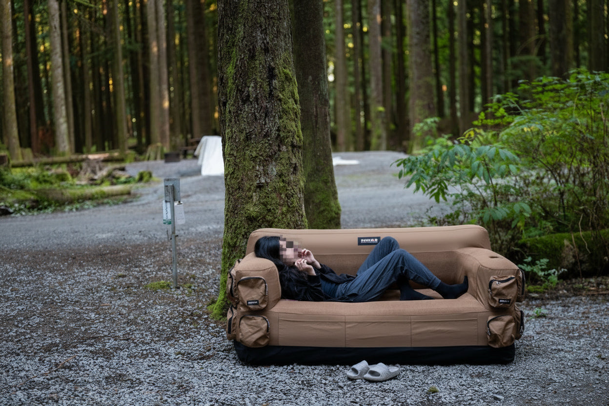 The Utility Air Sofa SF180 is an inflatable outdoor sofa that finally solves everything people dislike about air furniture, no wobbling, no collapsing, no sticky PVC. Its reinforced structure keeps you steady, the removable fabric cover feels like a real sofa, and the generous 5'9"(180cm) width gives you space to relax alone or share with friends. Quick to set up, easy to clean, and built for real outdoor use, it turns any campsite into a comfortable place to unwind.