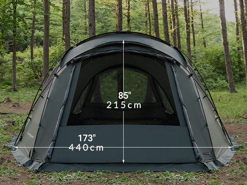 Provides large vestibule (L244"×W173"×H85") with stable support via side poles.