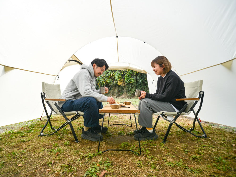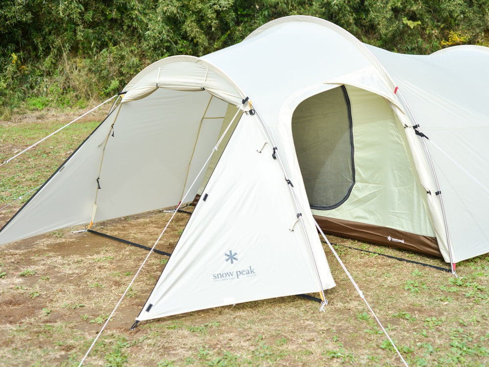 The Vault in Ivory is a versatile four-person tent. Use it for car camping with groups for a comfortable sleeping and gathering solution.